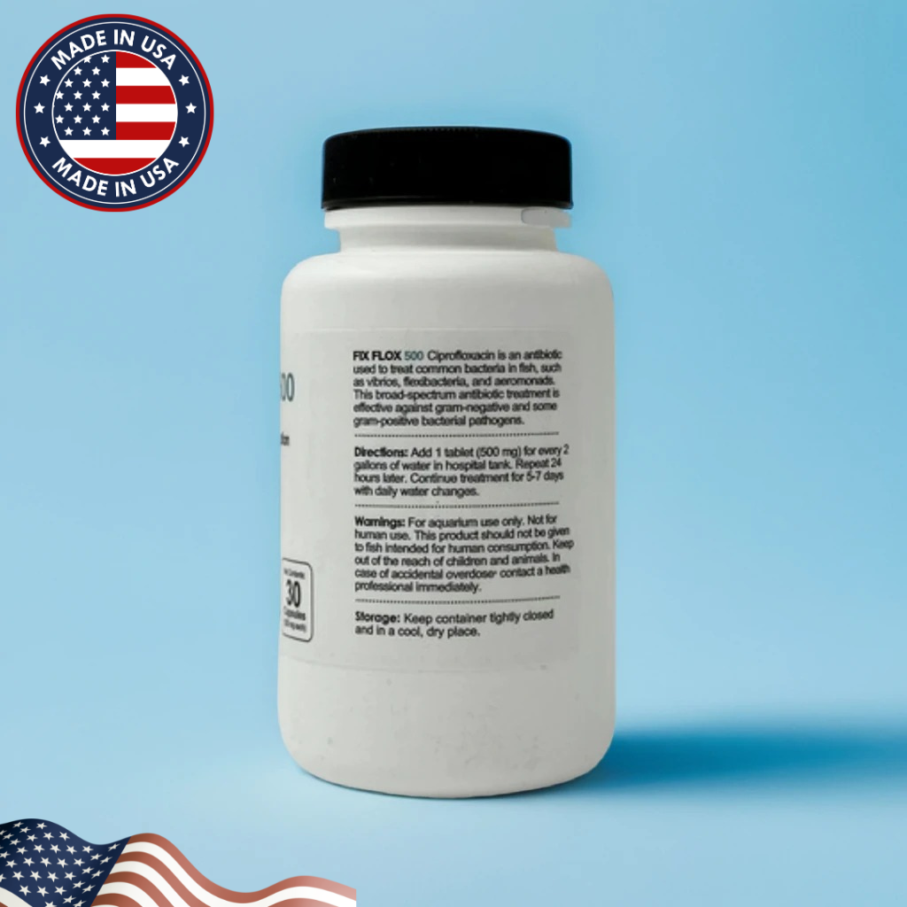 Fish Flox Ciprofloxacin Capsules are a powerful broad-spectrum antibiotic designed specifically to treat bacterial infections in fish. Utilizing ciprofloxacin, a fluoroquinolone antimicrobial agent, this product helps combat a wide range of gram-negative and gram-positive bacterial infections. Fish Flox is ideal for maintaining the health of ornamental and aquarium fish, addressing issues such as fin rot, columnaris disease, septicemia, and other waterborne infections. Its targeted action ensures your aquatic pets thrive in a clean and healthy environment.